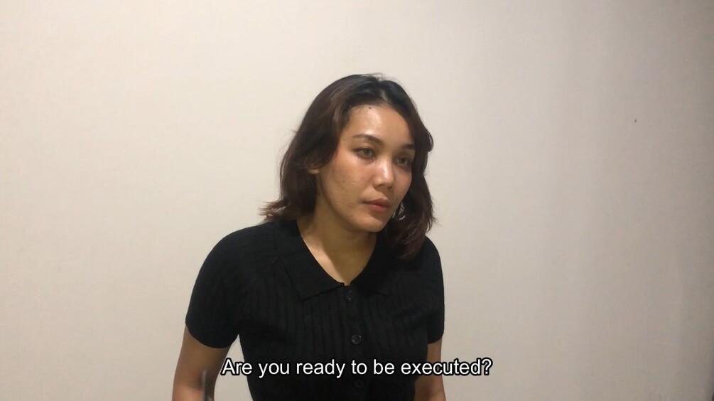 A fashionista was about to be executed. She wanted to look good for her execution so she changed her clothes first. She asked the executioner about her new clothes but the executioner didn't like it. She changed clothes several times until they both agreed that the last one was the best. The execution wanted to stab her in the chest but the fashionista wanted to be stabbed in the navel instead. The executioner then impaled the fashionista's navel with a spear. The fashionista almost choked on her own blood before she died. In the end, the fashionista looked very sexy with a spear through her navel.