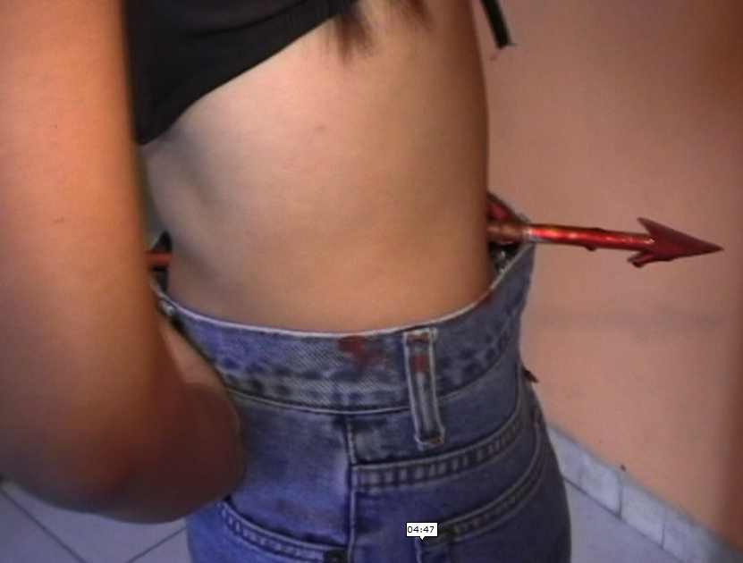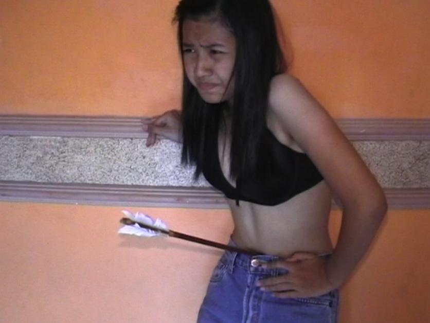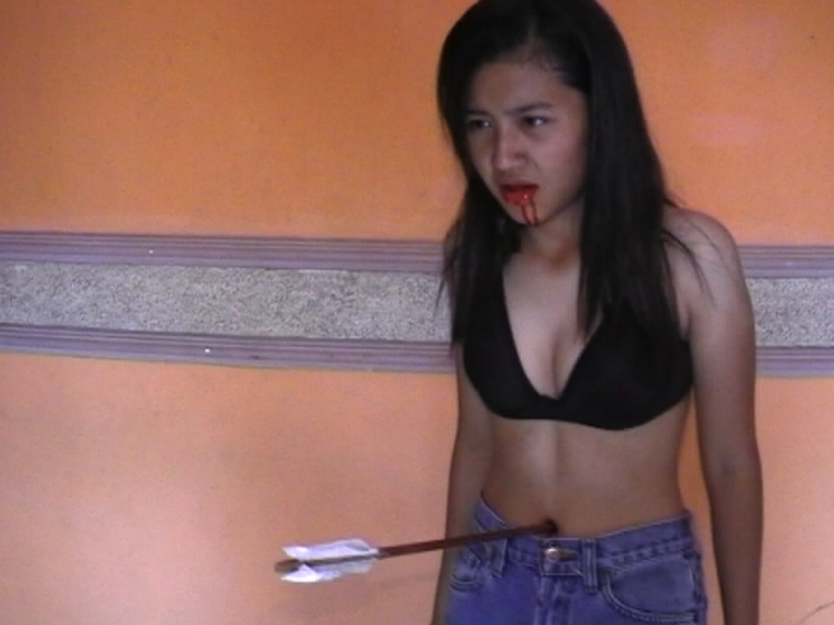 A young and gorgeous Asian girl was belly dancing in front of her executioner. She was shot in her navel with an arrow and then forced to continue dancing. After a while, the executioner pushed the arrow until it came out her back. Again, she was forced to keep on dancing even with blood flowing from her mouth. After the music stopped, the professional bellydancer asked the executioner if she was satisfied with her last dance. The executioner said she was satisfied as she flicked the arrow that was still stuck in the bellydancer's navel. The bellydancer could only flinch in pain as she watched the executioner leave her to die.