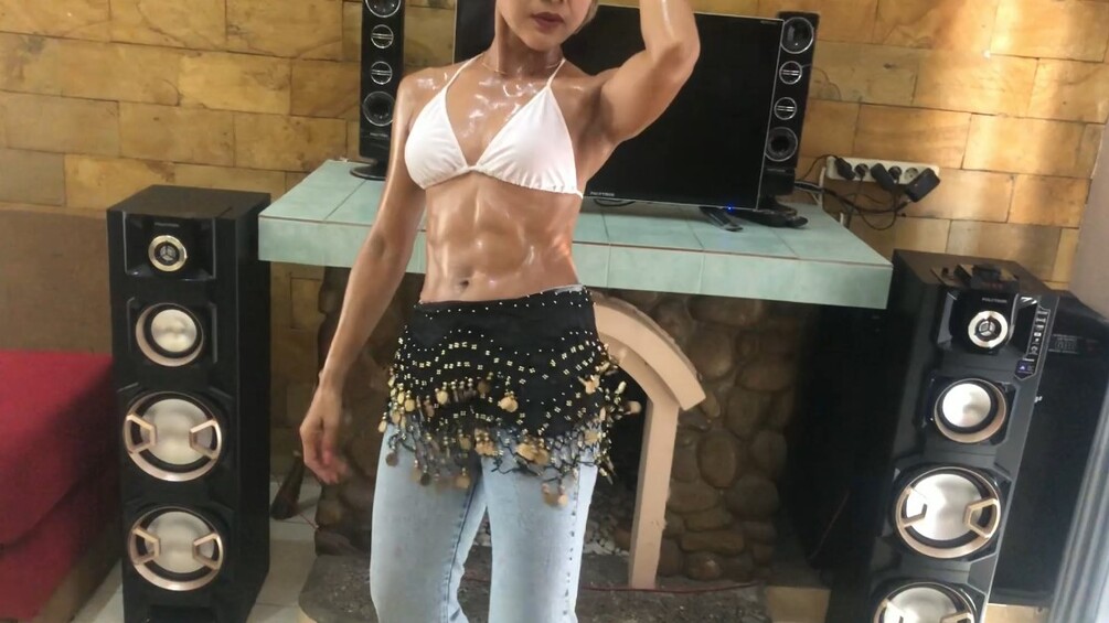 Have you ever seen a girl with perfect six-pack abs performing a belly dance? How about a girl with perfect six-pack abs performing a belly dance with a knife stuck in her navel?